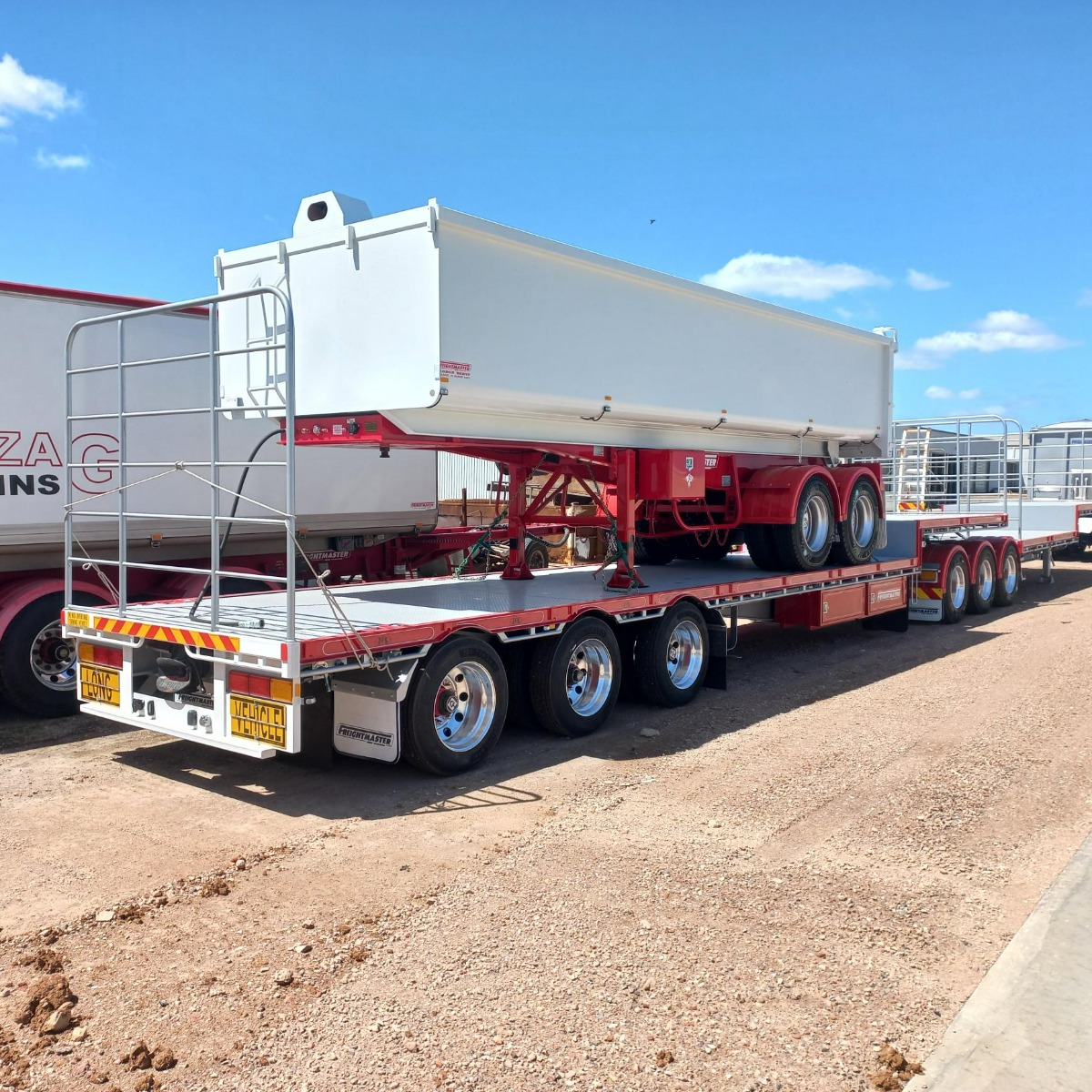 45' Air Bag Drop Deck , Digital weight Gauge , Full set of Twistlocks , Chain Points , Bolster Pockets , Road Train Lead Trailer