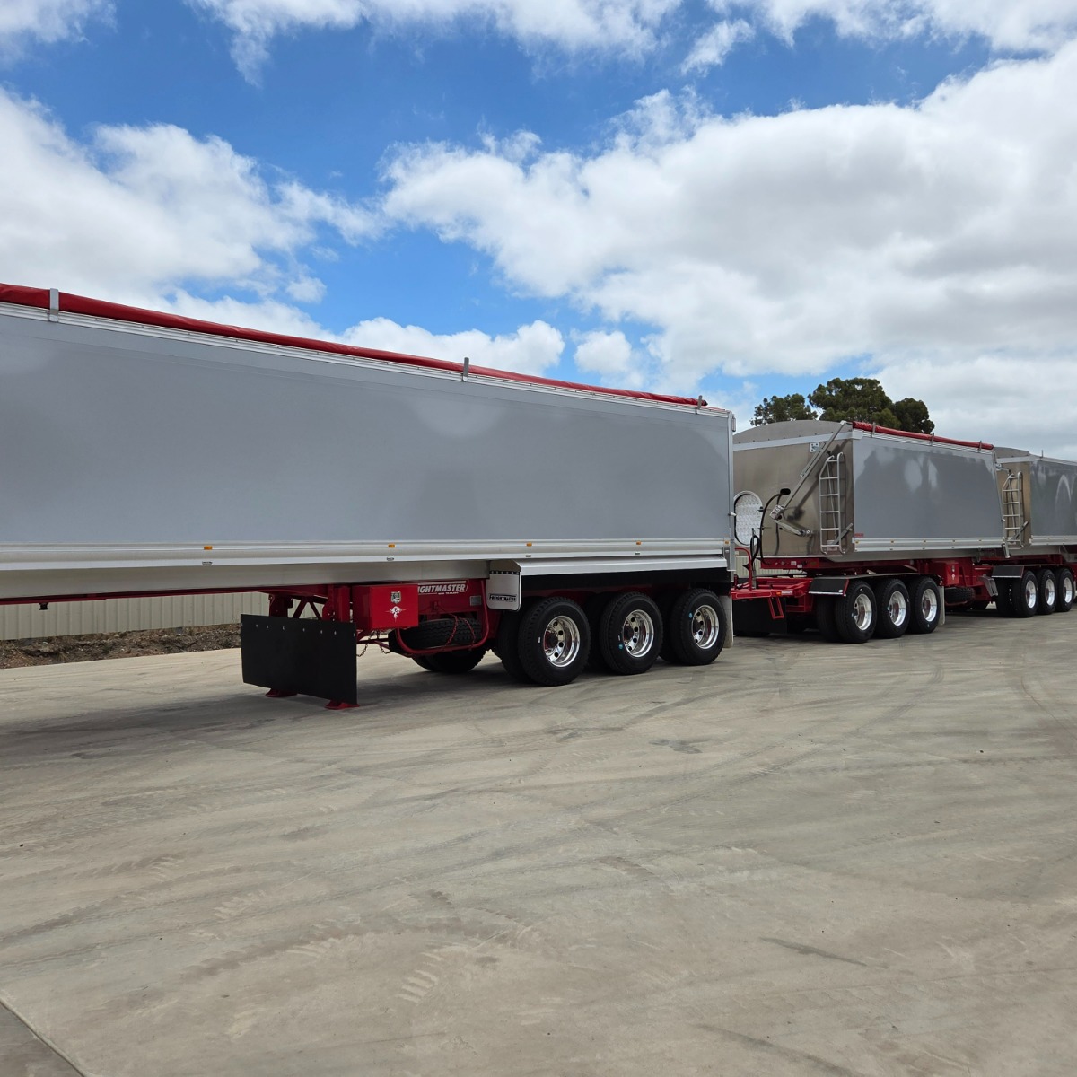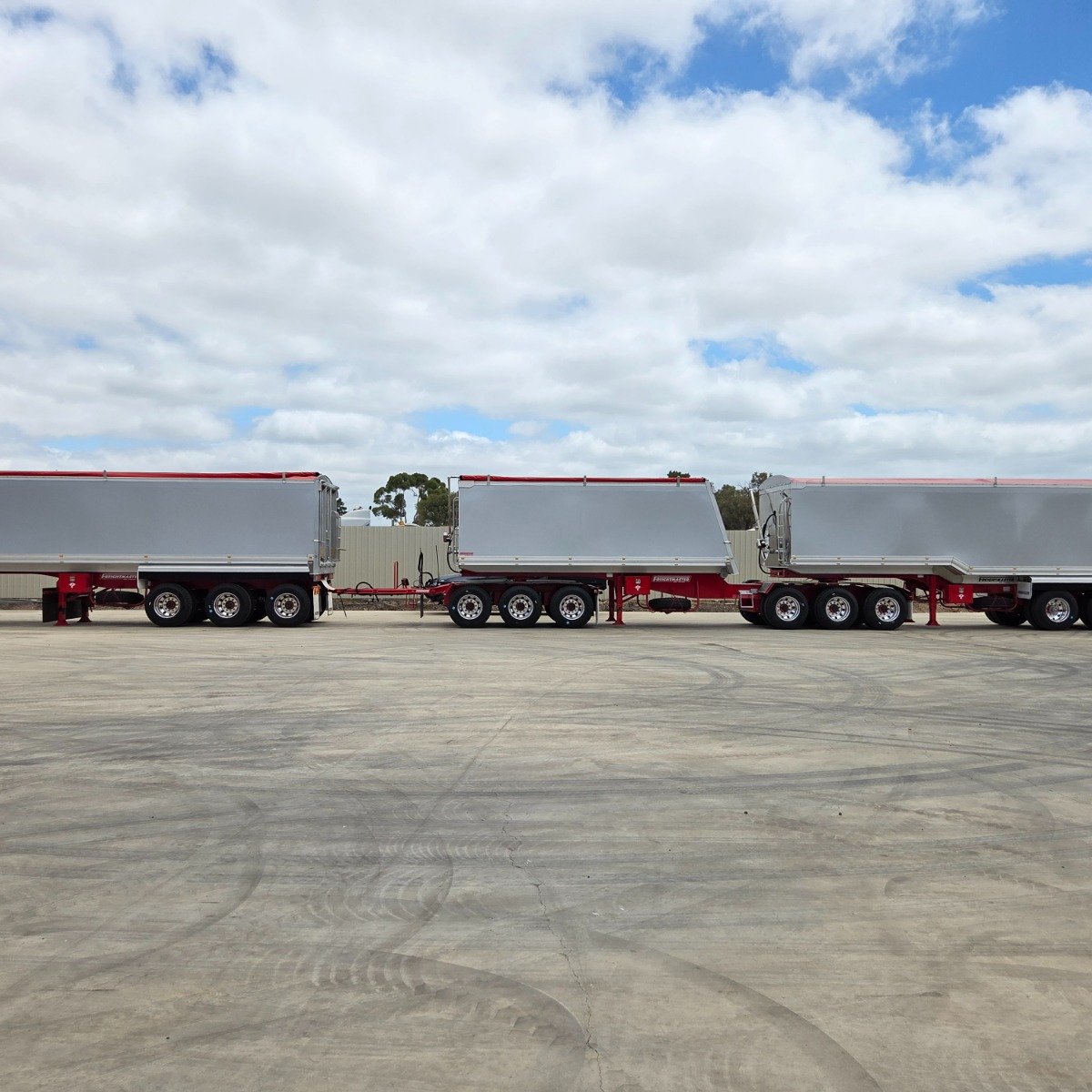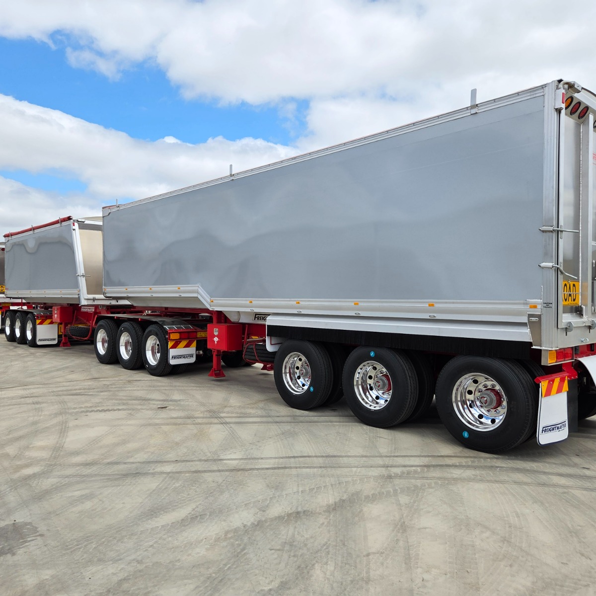 Freightmaster 32'x6'7 Road Train Lead , 8'1 Tri Axle Dolly , 21'6 Fixed Alloy A Trailer , 33'x6'7 Road Train lead rear trailer